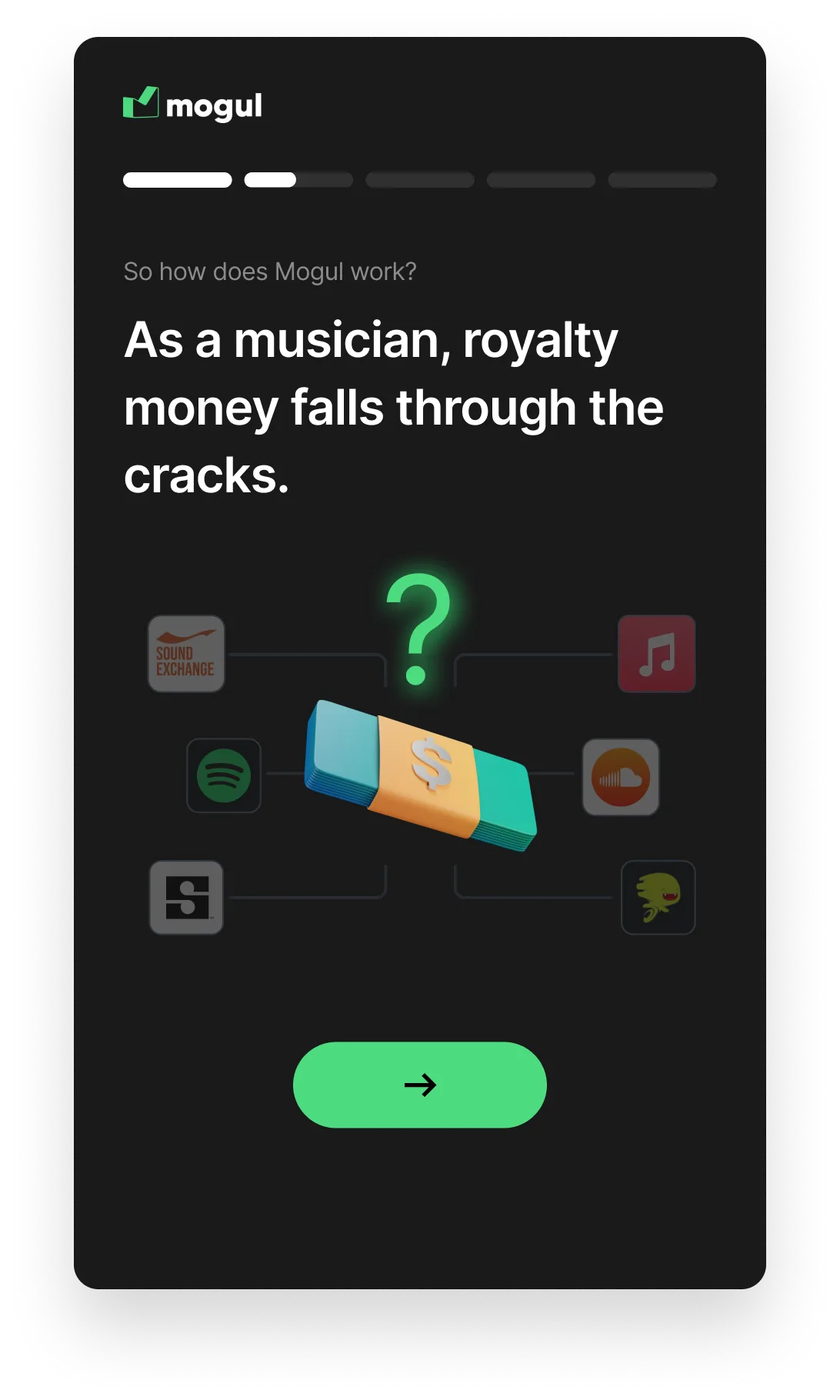 On an ongoing basis, I help Mogul with their product and marketing design, creating UX flows, advertisements, websites, and more. Together we created a platform for musicians to navigate the complicated finances of the music industry, uncovering money they didn't know existed.